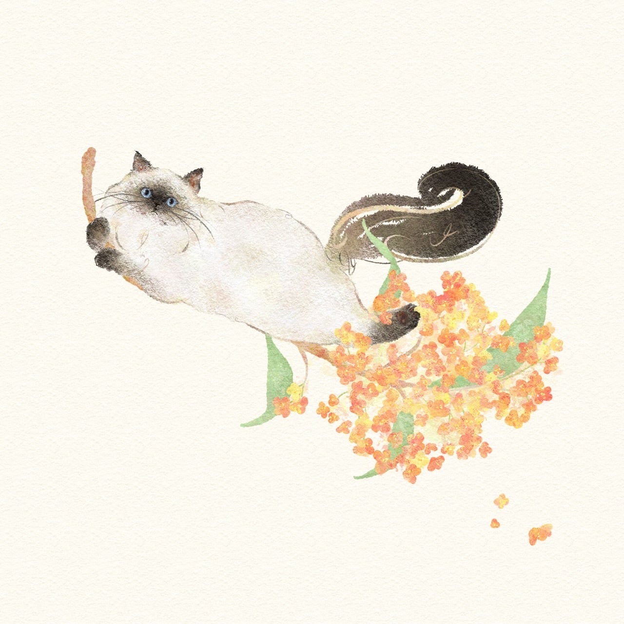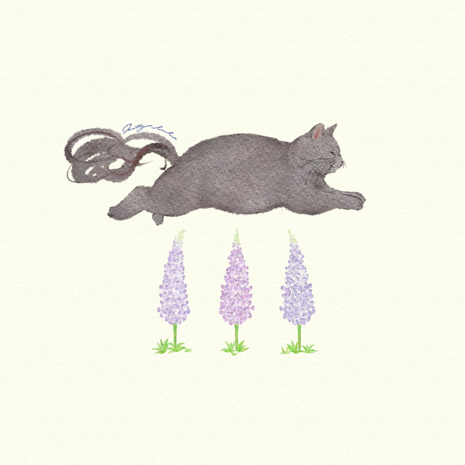 𓂃𓈒𖧷くるりんしっぽの猫と花𖧷𓈒𓂃